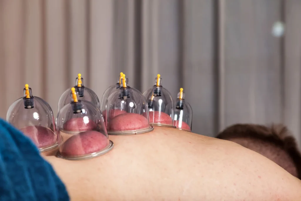 Therapist,Giving,Fire,Cupping,Treatment,To,Patient,On,Massage,Couch